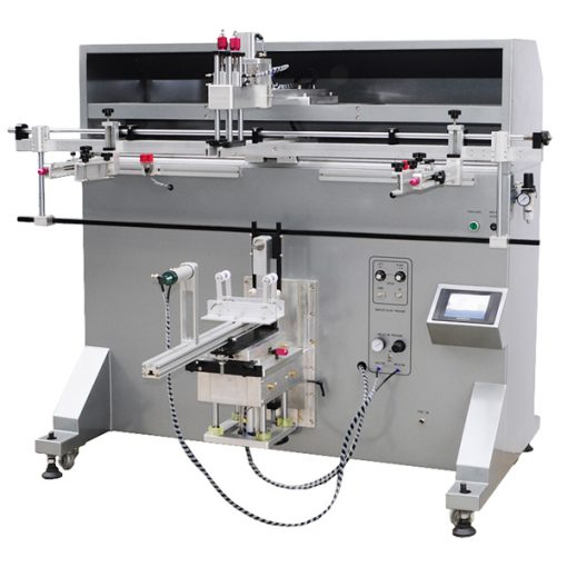AP-1200 Es una máquina de serigrafía redonda semiautomática. Está diseñada para impresión en cubos, cubos grandes y botellas de plástico de 1 galón. El AP-1200 La máquina de serigrafía jumbo redonda también se puede utilizar para serigrafiar botellas de vino de vidrio y botellas de cerveza. El AP-1200 ofrece cambios de herramientas rápidos y sencillos, un registro mecánico preciso y cómodos controles en el panel frontal. Esto hace que la AP-1200 una máquina universal de serigrafía redonda jumbo para objetos de gran tamaño.
