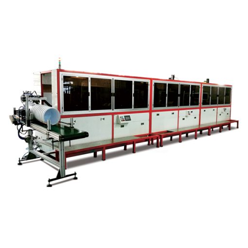 AP-350 автоматическая УФ трафаретная печатная машина представляет собой линию трафаретной печати, которая может варьироваться от 1 цвета до 6 цветов. Эта машина оснащена прецизионной механической шагающей балкой для точной транспортировки деталей. Когда ведра помещаются в точно обработанные приспособления, они непосредственно приводятся в движение и точно вращаются во время печати. Это оборудование для УФ-печати имеет полностью механический привод с использованием главного двигателя итальянского бренда с PLC-контролем всех движений.